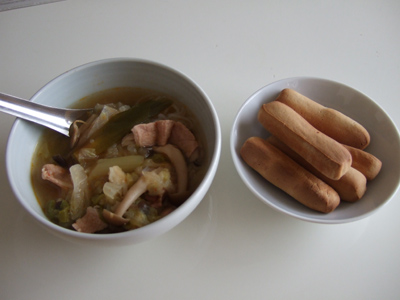 特に、夕飯なんかは、野菜スープとかと一緒に食べるともう超満腹です。